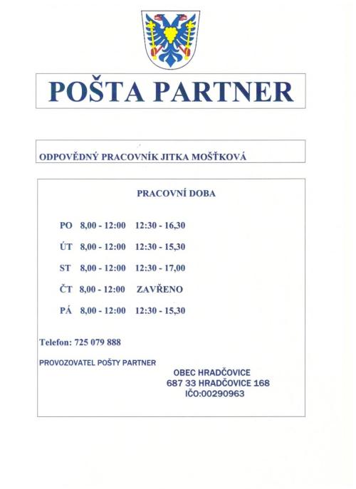 Úřední hodiny Pošta Partner